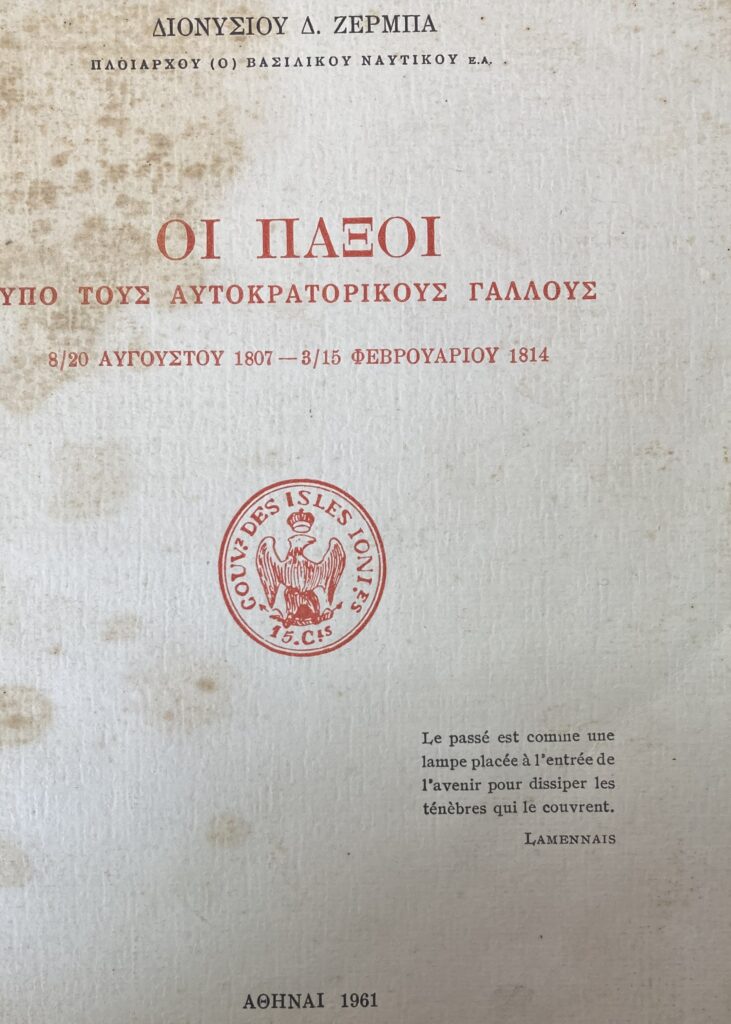 ψηφίσματος κυριαρχικώς έκδοθέντος, ότι αί, νήσοι Κέρκυρα, Κεφαλληνία, Ζάκυνθος, Λεύκάς, Ιθάκη, Κύθηρα, Παξοί καί τά έξαρτήματα αύτών ένοΰνται μετά τοΰ Βασιλείου τής ‘Ελλάδος, δπως έσαεί άποτελώσιν άναπόσπαστον αύτοΰ μέρος έν μια καί άδιαιρέτω πολιτεία ύπό...