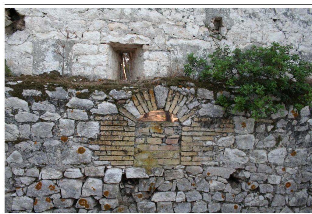 stringer course both above and below the slots. Several of these arquebus slots are set directly over the